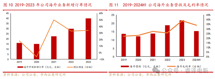 订单方面:2023年公司海外新增订单达40.1亿元,同比增长34%,2019-2023年CAGR为26%,订单规模增长显著。