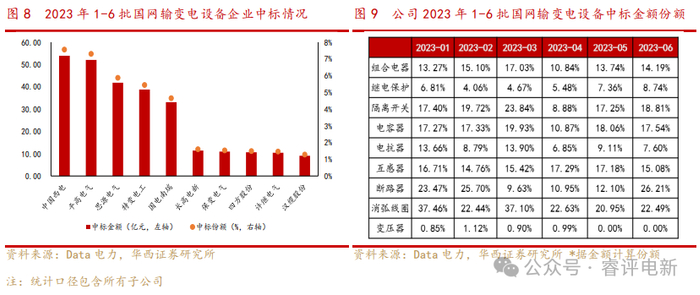 多类产品网内中标份额领先。据Data电力统计,2023年1-6批国网输变电设备招标中,思源电气的中标金额达41.85亿元,中标金额份额占比为5.87%,在上市公司层面排名靠前;分产品来看,在6个批次中,公司中标金额份额均在10%以上的产品包括组合电器、电容器、互感器、消弧线圈。我们认为,国内配套电网建设需求景气度的确定性和延续性较强,公司多类产品在网内市场中标份额领先,有望深度受益。