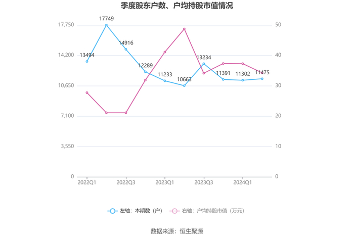 筹码集中度方面,截至2024年上半年末,公司股东总户数为1.15万户,较一季度末增长了173户,增幅1.53%;户均持股市值由一季度末的37.29万元下降至34.28万元,降幅为8.07%。