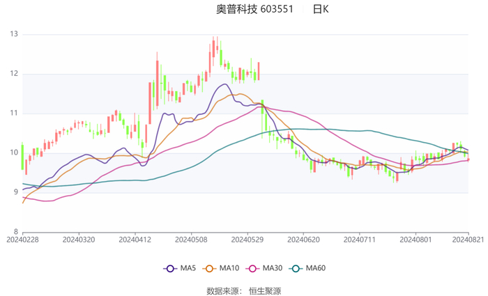 奥普科技:2024年上半年净利润同比下降4.43% 拟10派3元