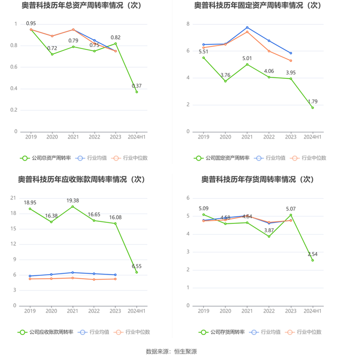 营运能力方面,2024年上半年,公司公司总资产周转率为0.37次,上年同期为0.37次(2023年上半年行业平均值为0.38次,公司位居同行业50/102);固定资产周转率为1.79次,上年同期为1.67次(2023年上半年行业平均值为3.16次,公司位居同行业77/102);公司应收账款周转率、存货周转率分别为6.55次、2.54次。