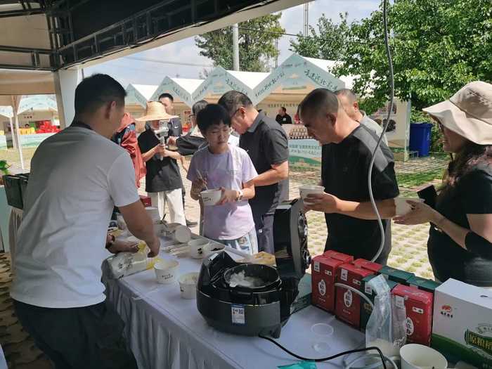 小编跟多个参展商和蔚县农业农村部门了解到,这里气候冷凉、昼夜温差大、日照充足,无霜期短,是生产绿色、有机农产品的天然工厂。依托独特的自然资源和气候条件,当地逐步形成了优质杂粮、马铃薯、错季蔬菜等十大优势产业。这其中,蔚县小米在明清时曾被列为“四大贡米”之一。蔚县的小米除了适于熬粥外,将其焖成小米干饭,散而不硬,软而不黏,色泽鲜黄诱人,口感劲道富有弹性,愈嚼回味愈香甜,当地历来就有以小米饭做日常主食的传统(写到这儿,小编有点流口水了