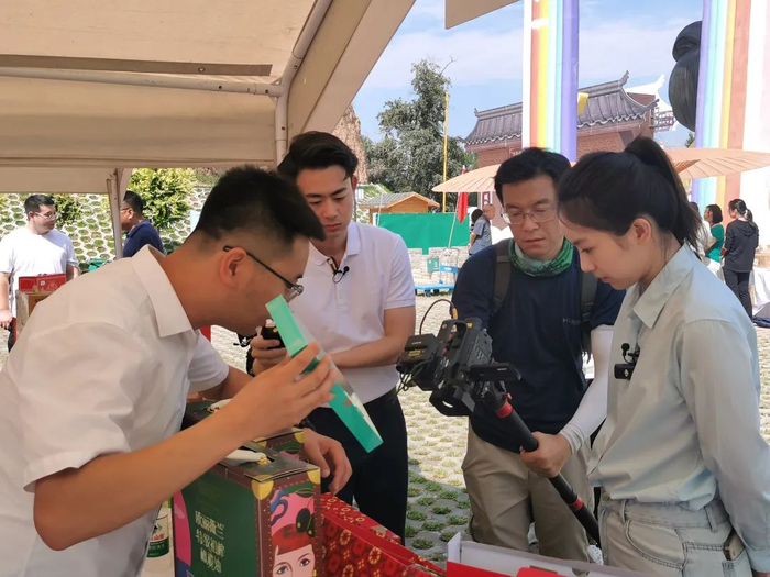 其中,在8月21日开始的“百市大集”云展播活动是重头戏之一,当地以及全国其它地方的涉农特色产品放在这儿集中展示,通过线下线上的方式集中宣传。当然,既然叫“云展播”,还是以线上宣传为主,就是由主播通过直播的方式,把这些产品在网上一一介绍给大家。