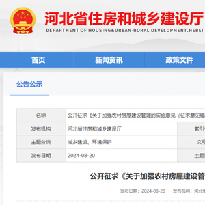 近日,河北省住房和城乡建设厅会同省应急管理厅、省自然资源厅、省农业农村厅、省市场监管局、省财政厅研究起草了《关于加强农村房屋建设管理的实施意见(征求意见稿)》,现向社会公开征求意见。