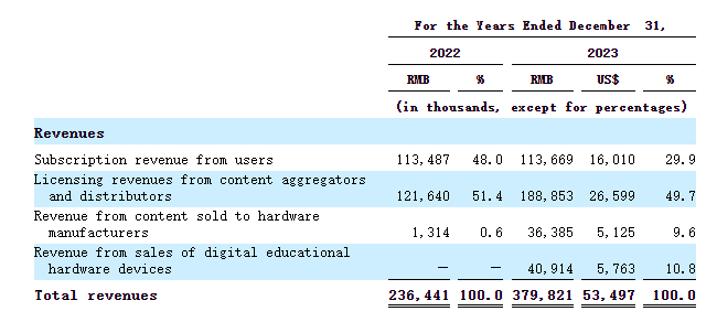 纳米盒,目前以中国的K-9学生为目标,拥有为他们提供数字和综合教育内容的核心专业知识,并计划进一步扩大公司的服务范围,为其他年龄段的人提供优质且引人入胜的数字内容。根据Frost & Sullivan的数据,就2022年的收入而言,纳米盒是中国最大的数字教科书平台和领先的K-9学生数字教育内容提供商。公司与中国领先的教材出版商合作,提供中小学主流教材的数字版本。公司的数字教材主要涵盖中国K-9学校使用的中文和英文科目。 公司还在内部创建和开发数字自学内容和休闲阅读材料。公司的人工智能生成内容技术使公司全面的数字内容能够提供互动、智能和有趣的学习体验。