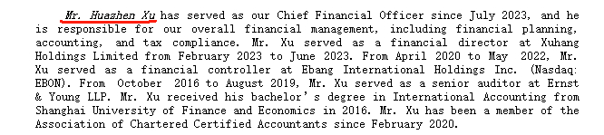 Huazhen Xu,首席财务官。