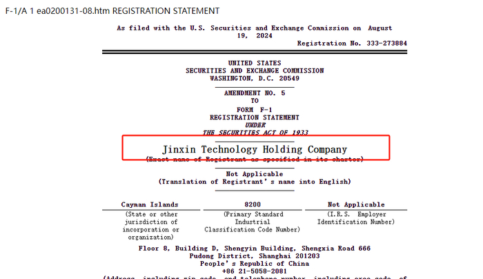 2024年8月19日,来自上海的中小学在线智慧阅读平台上海进馨网络科技有限公司的实质控股公司Jinxin Technology Holding Company(以下简称“纳米盒”)在美国证监会(SEC)更新招股书,拟于美国纳斯达克上市,股票代码NAMI。其于2023年3月27日在SEC秘密递交招股书,后于2023年8月10日公开披露招股书。