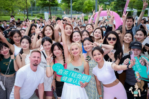 不仅如此,帕梅拉还邀请粉丝、顾客们一起现场“燃脂”,与运动爱好者们通过一套20分钟的健身操,尽情释放多巴胺。现场参与活动的粉丝,通过参与互动,赢取了喜茶结合帕梅拉元素设计的壶铃纸袋、冰箱贴等精美周边。