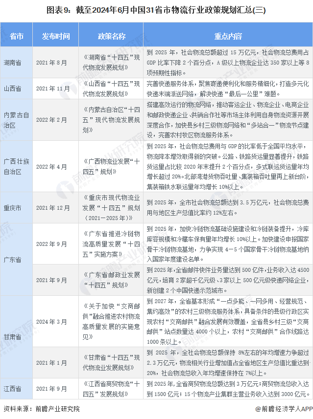 ——31省市物流行业发展目标解读