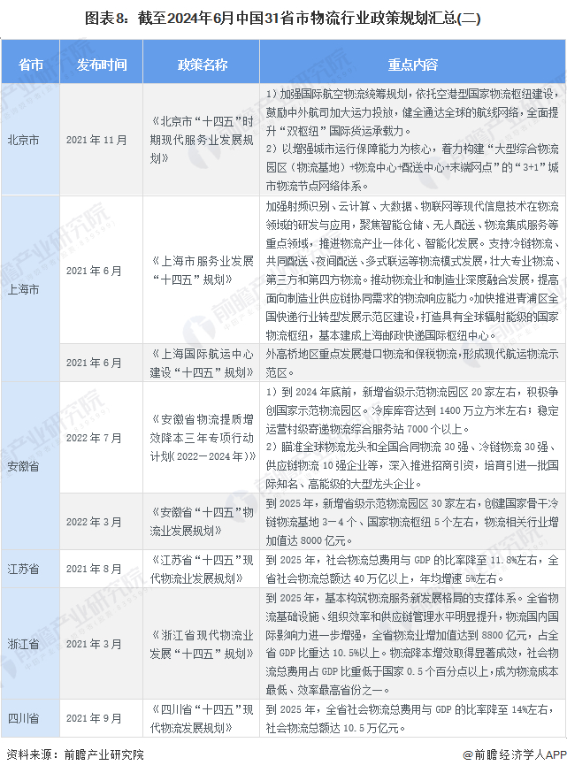 重磅!2024年中国及31省市物流行业政策汇总及解读(全)重点关注降本增效、冷链物流和智慧物流