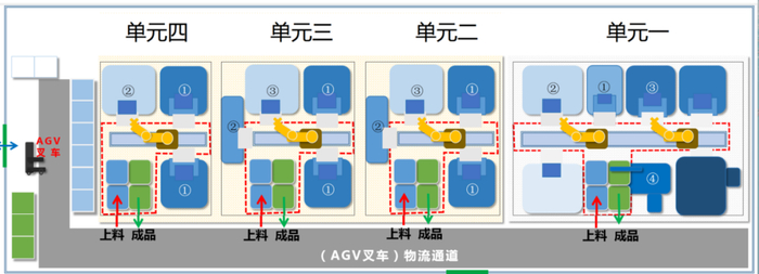 引入精益生产理念,充分应用5S管理和定置管理等精益工具和方法,通过对称双回字形布局实现了生产现场面积的最大化利用,整体呈现饱和矩形布置,经济效能效益较高,生产节拍提高70%。