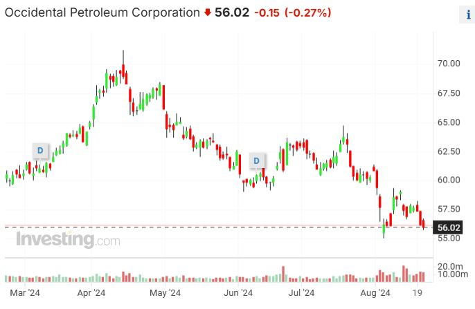 但从过去的一个月来看,西方石油公司整个月的股价都低于这一水平,这是自今年1月份以来持续时间最长的一次下跌。