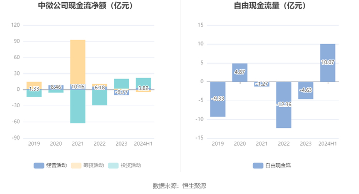 进一步统计发现,2024年上半年公司自由现金流为10.07亿元,上年同期为-0.87亿元。