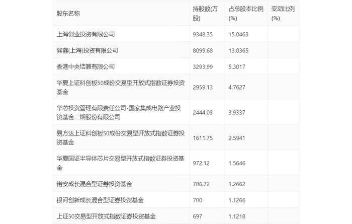 半年报显示,2024年上半年末公司十大流通股东中,新进股东为上证50交易型开放式指数证券投资基金,取代了一季度末的嘉兴智微企业管理合伙企业(有限合伙)。在具体持股比例上,华夏上证科创板50成份交易型开放式指数证券投资基金、易方达上证科创板50成份交易型开放式指数证券投资基金持股有所上升,上海创业投资有限公司、巽鑫(上海)投资有限公司、香港中央结算有限公司、华芯投资管理有限责任公司-国家集成电路产业投资基金二期股份有限公司、华夏国证半导体芯片交易型开放式指数证券投资基金、诺安成长混合型证券投资基金、银河创新成长混合型证券投资基金持股有所下降。