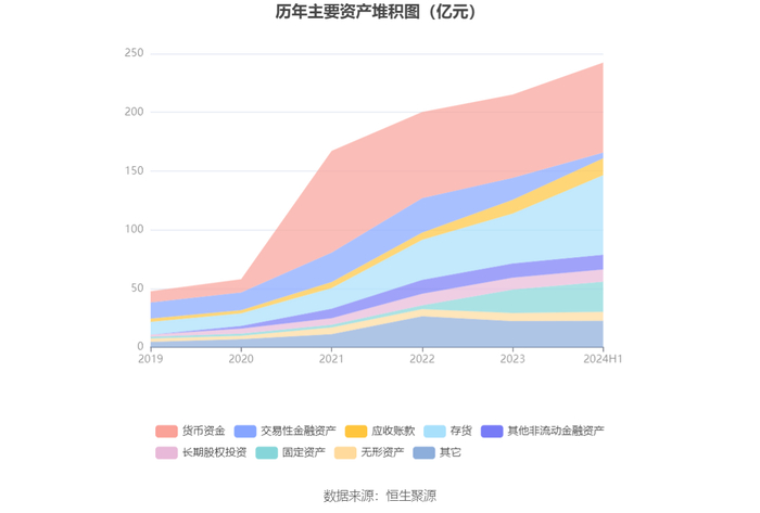 资产重大变化方面,截至2024年上半年末,公司存货较上年末增加59.09%,占公司总资产比重上升8.17个百分点;交易性金融资产较上年末减少73.62%,占公司总资产比重下降6.65个百分点;在建工程较上年末减少42.83%,占公司总资产比重下降1.94个百分点;货币资金较上年末增加7.88%,占公司总资产比重下降1.39个百分点。