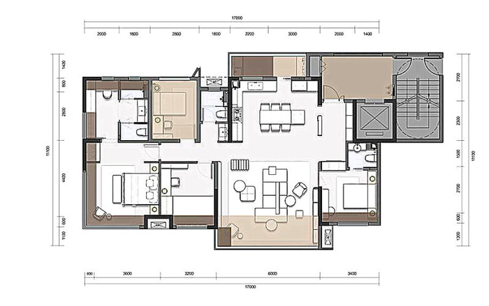据了解,该项目入户的电梯前厅采用全明、观景设计,兼具收纳、储物等功能,其128平方米户型电梯前厅使用面积超11平方米,接近一个小卧室。同时,该户型采用大横厅设计,约6.9米的客厅开间也营造出了居住的尺度空间感。