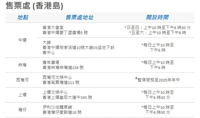 康文署表示,活动当日场内不设取票服务,观众必须在8月30日或之前到指定地点领取门票。
