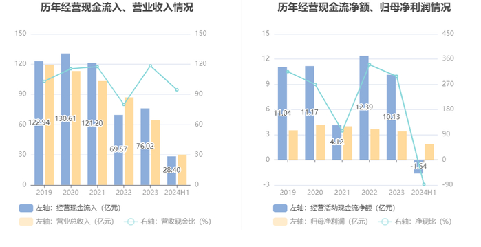 进一步统计发现,2024年上半年公司自由现金流为-2.41亿元,上年同期为4.85亿元。