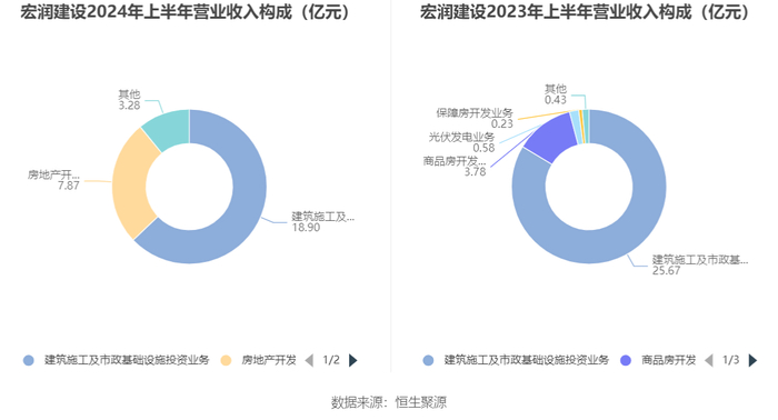 分产品看,建筑施工及市政基础设施投资业务、房地产开发业务2024年上半年毛利率分别为12.34%、45.57%。
