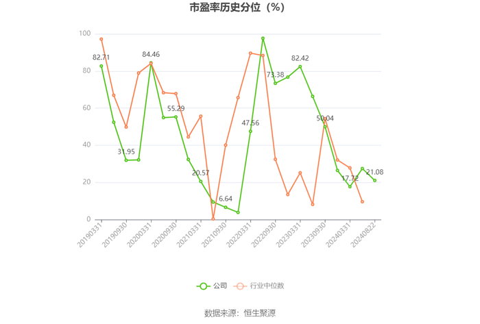 市盈率为负时,不显示当期分位数,会导致折线图中断。