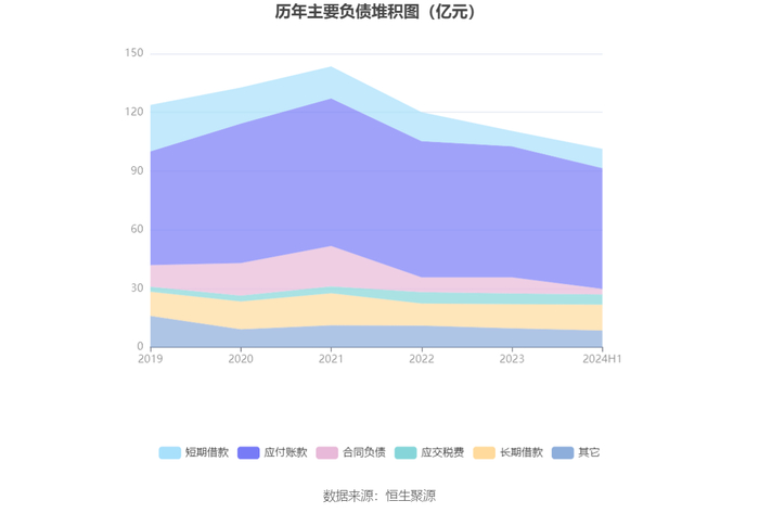 2024年上半年,公司经营活动现金流净额为-1.64亿元,同比减少7.56亿元,主要系报告期内建筑施工业务及新能源业务实现的经营活动现金流入减少所致;筹资活动现金流净额4689.15万元,同比增加5.87亿元,主要系上年同期较大幅度的刚性债务偿还所致;投资活动现金流净额-8131.42万元,上年同期为-9665.48万元。