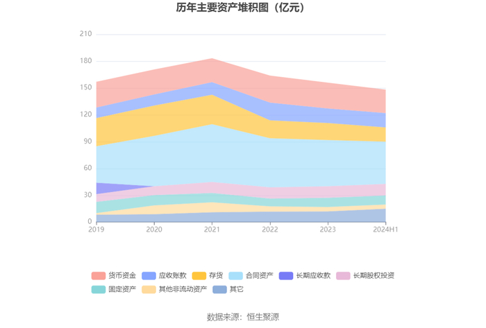 资产重大变化方面,截至2024年上半年末,公司存货较上年末减少16.22%,占公司总资产比重下降1.44个百分点;合同资产较上年末减少8.64%,占公司总资产比重下降1.26个百分点;货币资金较上年末减少9.60%,占公司总资产比重下降0.90个百分点;投资性房地产较上年末增加19.38%,占公司总资产比重上升0.76个百分点。