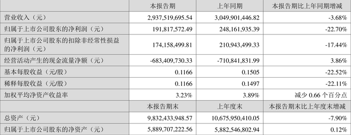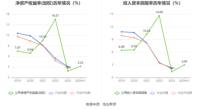 数据显示,2024年上半年公司加权平均净资产收益率为3.23%,较上年同期下降0.66个百分点;公司2024年上半年投入资本回报率为3.00%,较上年同期下降0.45个百分点。