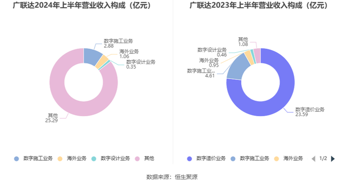 分产品来看,2024年上半年公司主营业务中,数字施工业务收入2.88亿元,同比下降37.46%,占营业收入的9.74%;海外业务收入1.06亿元,同比增长11.29%,占营业收入的3.58%;数字设计业务收入0.35亿元,同比下降22.03%,占营业收入的1.20%。