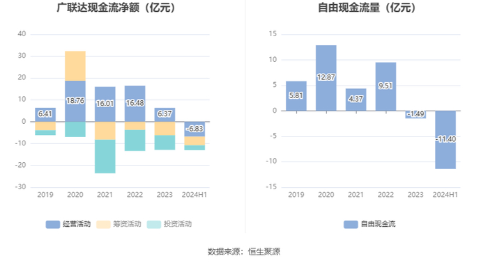 进一步统计发现,2024年上半年公司自由现金流为-11.40亿元,上年同期为-12.97亿元。