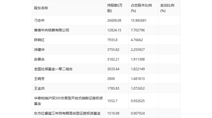 半年报显示,2024年上半年末公司十大流通股东中,新进股东为华泰柏瑞沪深300交易型开放式指数证券投资基金、东方红睿玺三年持有期混合型证券投资基金,取代了一季度末的广联达科技股份有限公司-2023年员工持股计划、东方红睿玺三年定期开放灵活配置混合型证券投资基金。在具体持股比例上,陈晓红持股有所上升,香港中央结算有限公司持股有所下降。