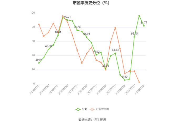市盈率为负时,不显示当期分位数,会导致折线图中断。