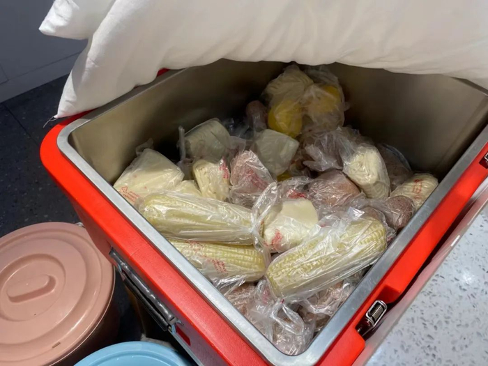 “碳水档口甚至摆了一个筐子,上面盖着棉被,大姨会让你掀开自己选,里面放着馒头、花卷、玉米、玉米窝头……扑面而来的米面香,还以为真去山东老乡家做客了。