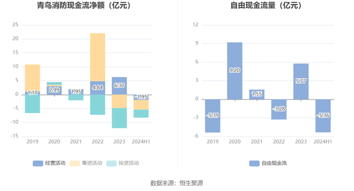 进一步统计发现,2024年上半年公司自由现金流为-5.36亿元,上年同期为-0.22亿元。
