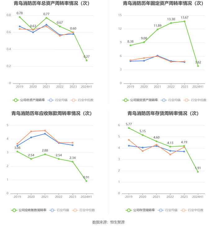 2024年上半年,公司流动比率为3.91,速动比率为3.45。