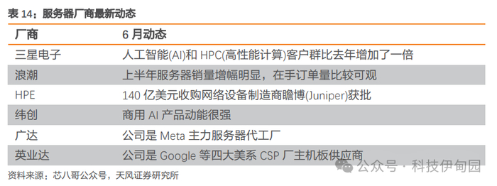 7月,AI服务器需求增长强劲,头部厂商在手订单旺盛。