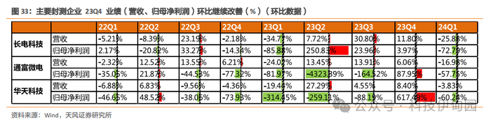 封测大厂来看23H1业绩环比改善,24Q1同比高增。根据头部封测公司23Q3、Q4报告,可以发现各公司营收均有环比改善,归母净利润环比改善或跌幅收窄,整体呈缓慢复苏态势。24Q1营收业绩因制造周期环比下降,但下降幅度较23Q1相对较小,同比营收与归母净利润依然有所上升。
