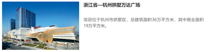 大连万达商管官网显示,杭州拱墅万达广场项目位于杭州市拱墅区,总建筑面积36万平方米,其中商业面积19万平方米,为全国代表性万达广场之一。