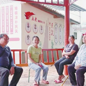 村民在议事亭协商议事