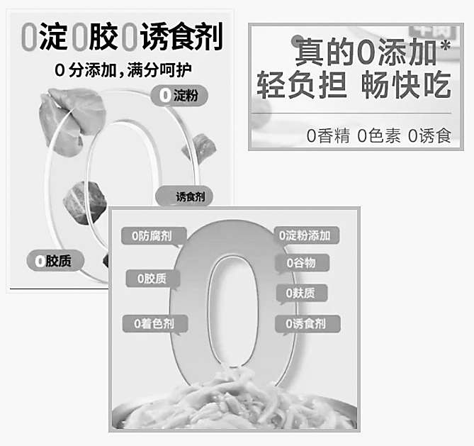 记者了解到,宠物零食中维生素、矿物质等营养物质往往有异味,且其生产加工过程中易受细菌、霉菌污染,所以一定量的添加剂不仅可以改善宠物零食的口感,而且能够防止食物变质。但当前市场上许多宠物零食以“0诱食剂”“0防腐剂”等宣传诱导消费者,让很多爱宠人士对诱食剂、防腐剂闻之色变。