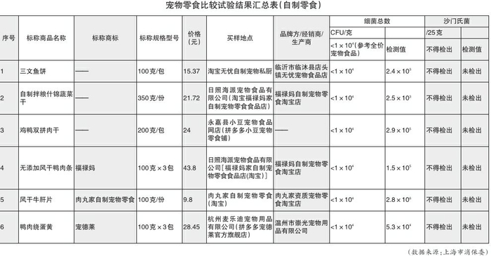 随着消费者科学养宠意识不断升级,天然、无添加的自制粮备受宠物主人推崇。本次比较试验随机购买了6款自制宠物零食,参考全价宠物食品的限量要求,对其卫生指标(沙门氏菌、菌落总数)进行了测试。