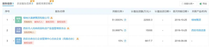 天眼查显示,混改后,绿地控股旗下绿地大基建集团有限公司、西安市国资委和西安合思合行企业管理中心合伙企业(有限合伙)对西安建工的出资比例分别为51.00%、34.00%和15.00%。绿地大基建为西安建工的控股股东,实际控制人为西安市国资委。
