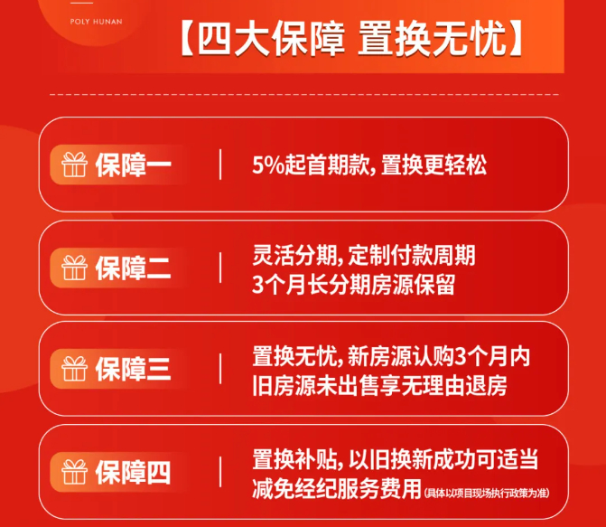 根据该政策,换房人可与湖南保利和中介机构共同签订“以旧换新”协议,湖南保利对换房人意向购买的新房设定三个月的“解约保护期”。在协议约定期内,中介机构优先推荐换房人房源,助力客户的旧房源尽快成交,并适当减免经纪服务费用。