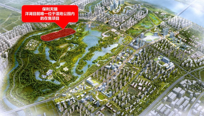 保利天瑞占据非常核心的城市自然资源,项目与7200亩洋湖湿地公园相邻。据统计,长沙近4年来成交的327宗涉宅地块里,仅保利天瑞项目地块容积率为1.1。稀缺性很是明显。