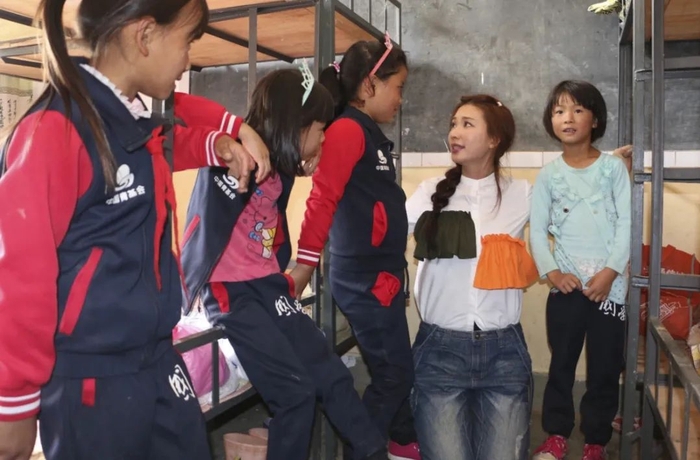 从2013年起,她和中国扶贫基金会联合发起「筑巢行动」,在四川、内蒙、宁夏多个地区,为贫困学生建造15所学校宿舍,累计捐款数千万。