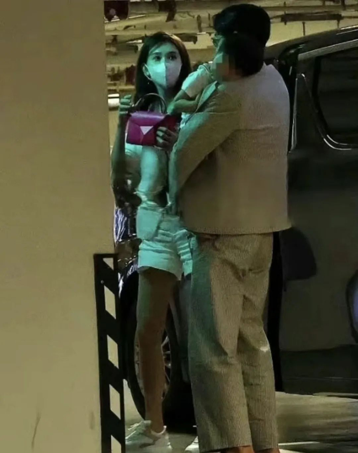 两人轮流抱娃、一直在亲密的交流,一家人看上去非常和谐。