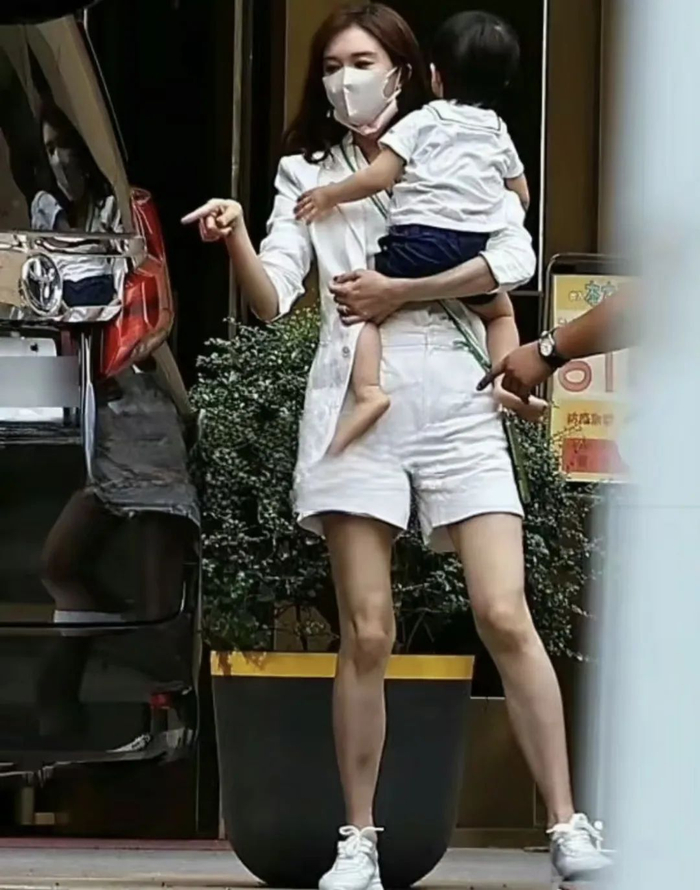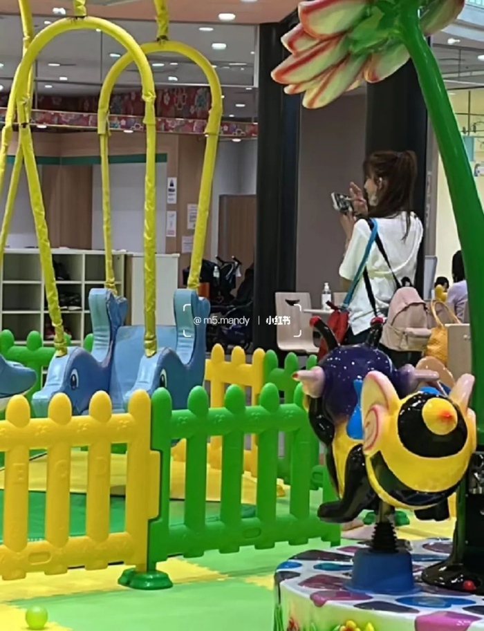 上个月,她被网友偶遇独自带娃在游乐场玩耍。背着大包小包,给孩子喂水、用手机拍视频,温柔又耐心: