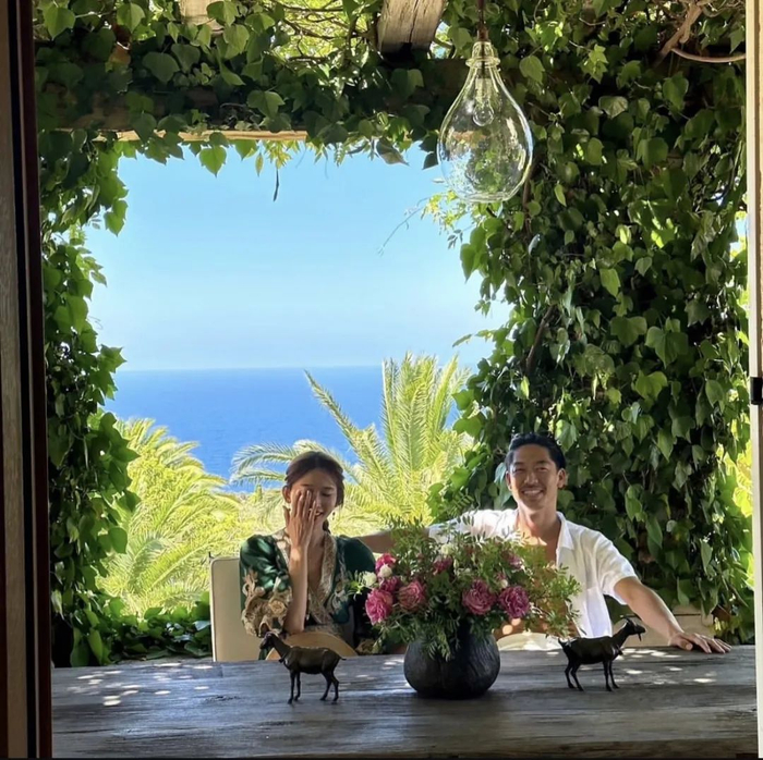 在法国被网友拍到牵着手在凡尔赛宫散步,慵懒惬意,连背影都写着“幸福”两个字。