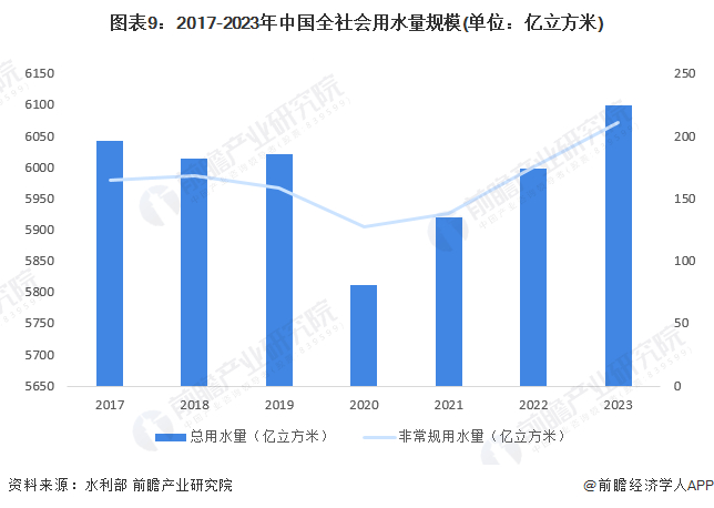 在近年来我国国内生产总值持续增长的背景下,用水总量保持稳定,非常规用水量波动增长,全社会用水效率和效益不断提高。