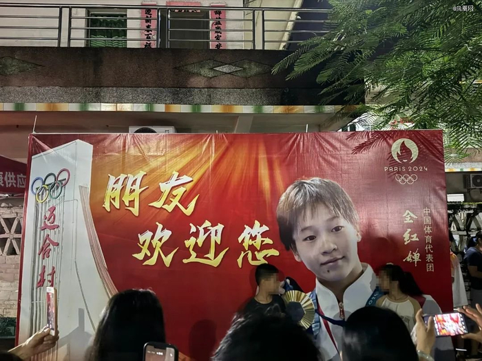 2021年7月,凤凰网曾在东京奥运会赛前探访迈合村。那时,我们辗转询问了三五位村民,才找到全红婵家的具体位置。三年后,你只需要顺着人群流动的方向就能抵达。