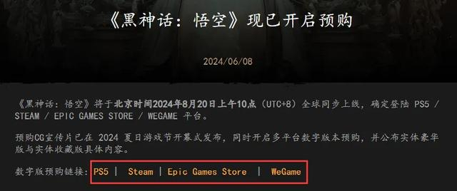 据了解,《黑神话:悟空》本次的发布平台,除了电脑端的Steam、EpicGamesStore和WeGame外,目前想玩上《黑神话:悟空》,还有一个选择是买一台索尼旗下的游戏主机PS5。